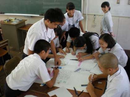 2年生は、平和学習の壁新聞を熱心に作成していました。