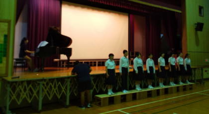 顧問の先生のピアノ伴奏のもと、学級合唱とは違う美声で合唱します。
