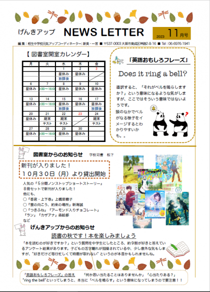 学校元気アップコーディネーターさんがニュースレター11月号を発行してくださいました。