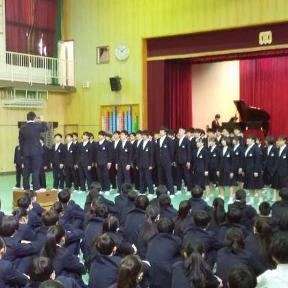 そのあと、3年生全員で卒業の歌「群青」を力強く美しいハーモニーで、在校生に向けて合唱しました。