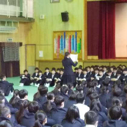 卒業式には1・2年生在校生は参列できないため、お別れ会を実施。