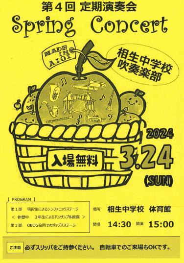 3月24日(日)、本校吹奏楽部が定期演奏会を開催します。