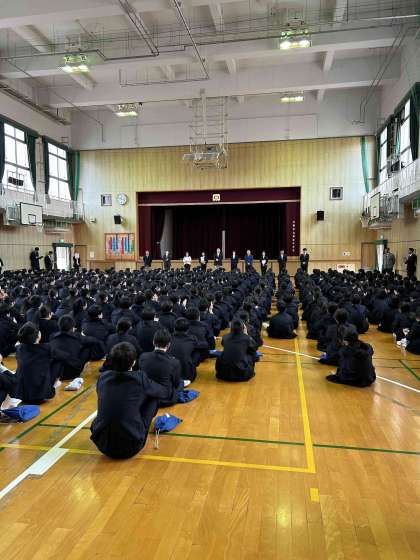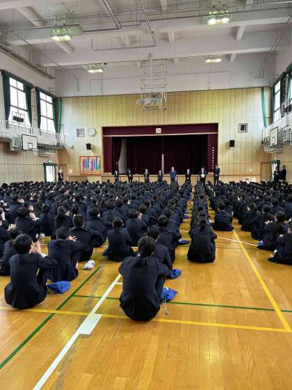 校長先生のお話の後は、各学年所属の先生方の紹介と、全体にかかわる教職員の紹介がありました。写真は上から1年生、2年生、3年生の紹介の様子です。