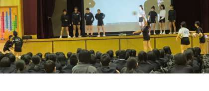 放課後に部活動紹介がありました。各部活動の部員たちが1年生にそれぞれの部活動の魅力を、実演や動画を通してアピールしていました。