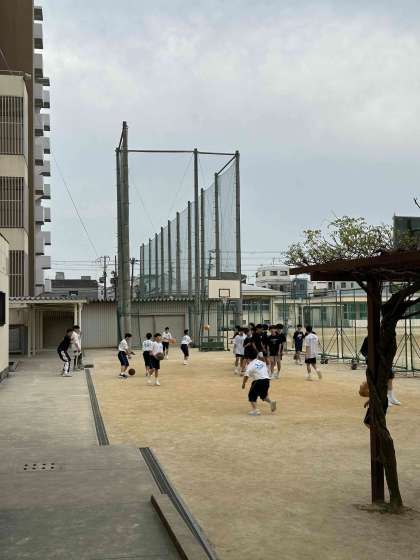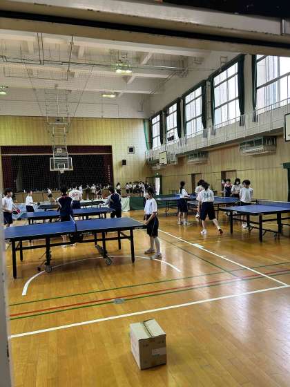 左から、男子バスケットボール部、右の手前は卓球部、奥は女子バスケットボール部です。