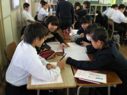 2年生にとっては、昨年学習した内容を復習し、実践的な内容について学ぶことができました。寸劇なども交えながら、状況判断についてグループワークを行いました。途中には○×クイズを行うなど、様々な角度から認知症について理解を深めることができました。