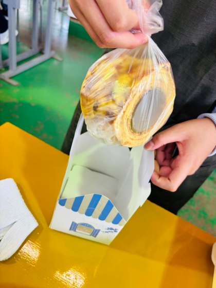 作ったバームクーヘンを食べたあと、お土産にも持って帰ります。
