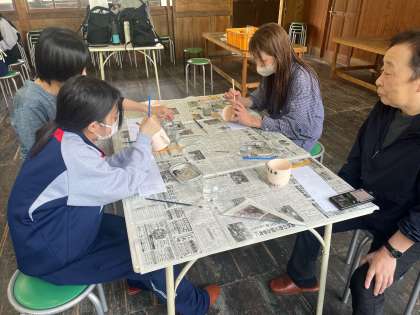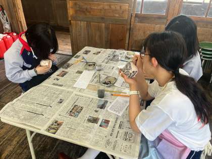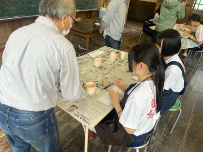 素焼きした陶器のカップに絵付けをする体験をしました。