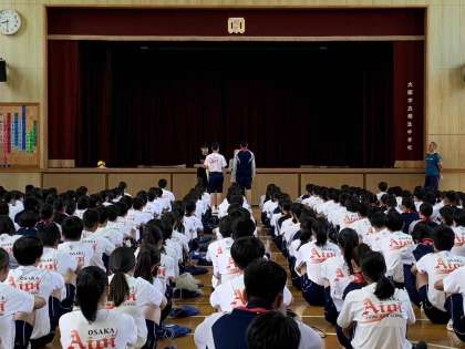 6月1日と2日に行われた大阪市春季総合体育大会での結果を踏まえ、全校集会で表彰が行われました。