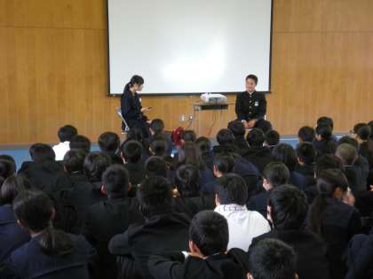 司会や演出を生徒が行い、みなさんに分かりやすく理解してもらえるように寸劇で説明を行うなどの工夫を行いました。