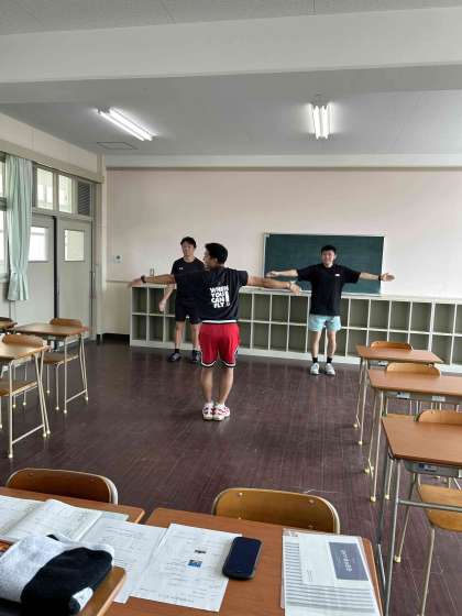 本日のオンライン授業の様子です。1年生は全体で万博ダンスを踊りました。