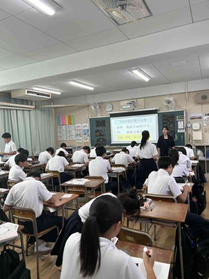 幾何学模様を描いています。質問のある生徒は積極的に先生に質問をしていました。