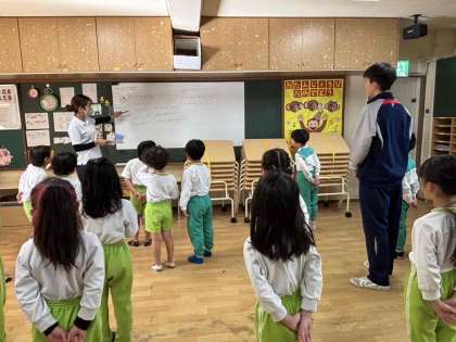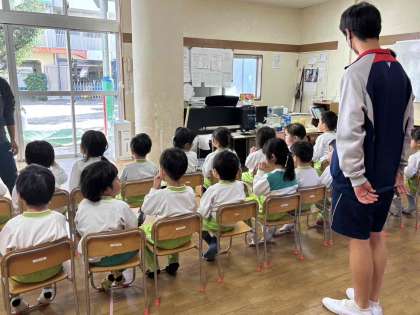 歌の練習、絵本の読み聞かせ、発表会の練習、水分補給を見守っているところです。