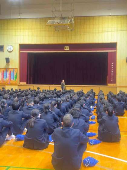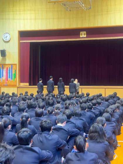 3学期が始まりました。写真は始業式と表彰の様子です。