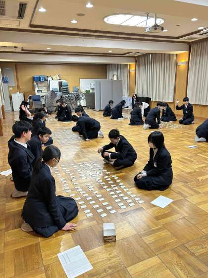今週末の百人一首大会に向けて、各クラスで練習をしています。