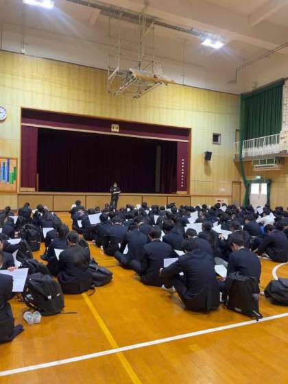 本日3年生は私立入試の事前指導を受けました。入試前日の過ごし方や当日注意する事など、話を聞きました。