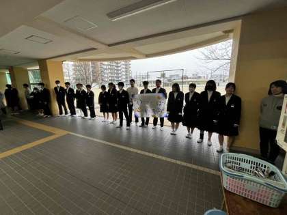 朝から担当の生徒が活動していました。今日は雨の為屋内で行いました。