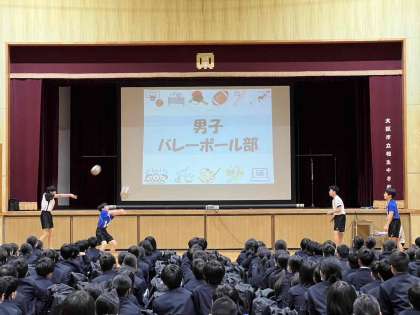 写真は、男子バレーボール部、合唱部、アート部です。