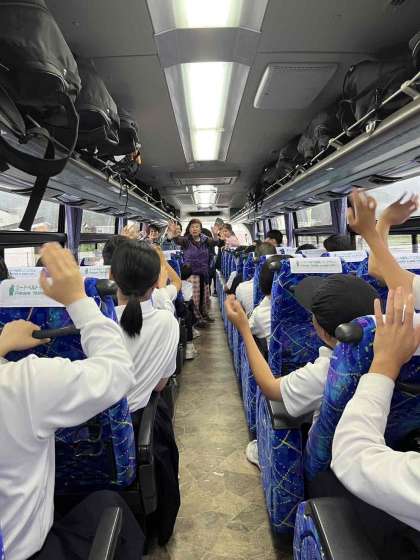 民泊を終え、各場所で退村式を行なって、集合場所に移動しています。
