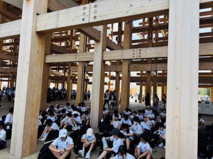 本日1年生は、大阪・関西万博への社会見学に行っています。無事に会場に到着し、これからパビリオンの見学を行います。
