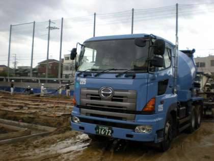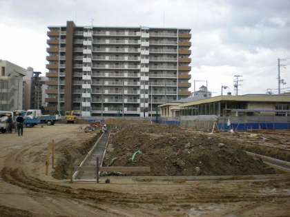仮設校舎の基礎部分にあたるコンクリートを流す前の様子です。