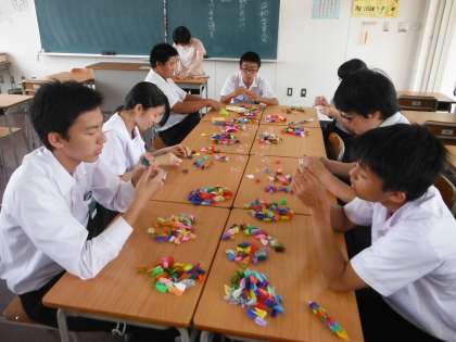 あわせて広島平和記念公園の「原爆の子の像」の前で平和セレモニーも行われ、セレモニーに向けて学年全員で作った折り鶴をまとめた千羽鶴も作成しました。一人ひとりの平和への思いが一つにまとまりました。