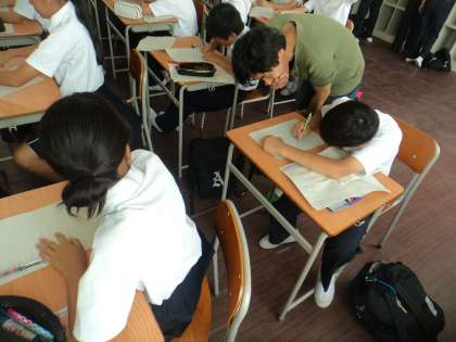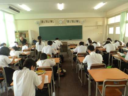 今回は習熟度教室で行っていますが、両教室に入りきらないほどの生徒が参加していました。学期の最後のテストに向かって真剣に取り組んでいる様子が伺えました。