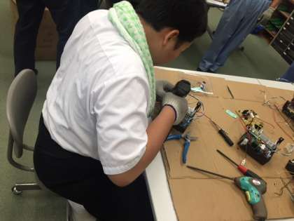 8月29日の2限から4限の間に、特別支援教室作業体験を行いました。炊飯器の中に組み込まれている基盤のネジを丁寧に取り除き、導線やその他の部品に分けて分解する作業を行いました。長い時間での作業でしたが、子どもたちは集中して行うことができました。