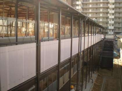 着工からおよそ2か月余りでほぼ完成に近い状態に仕上がってきました。工事関係者の方々のご尽力や近隣の皆様のご協力を得て、異例の速さで工事が進んでいます。内装や配線も順調です。2学期末には仮設校舎への引っ越し作業を予定しています。みなさまご協力ありがとうございます。