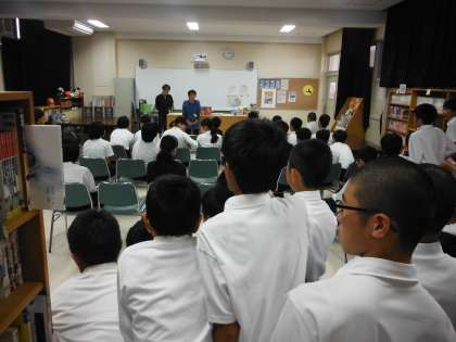 毎月1回行われている企画ですが、毎回多くのみなさんに来ていただいています。今回も立ち見ができるほどの盛況ぶりでした。心温まる優しいお話を、抑揚をつけてその場にいるかのような語りに、生徒のみなさんもほっこりできたのではないかと思います。
