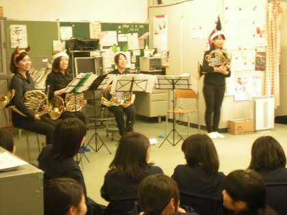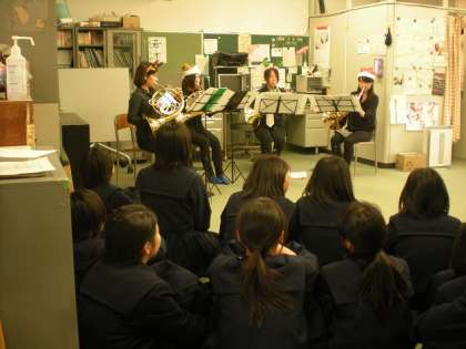 12月24日(火)特別支援学級で、相愛大学の学生ボランティアによるクリスマスコンサートが開催されました。ホルンによる合奏で素晴らしい音色を奏でられていました。