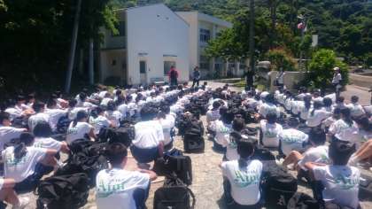 宿舎に到着しました。学級写真も撮影し、これから昼食です。