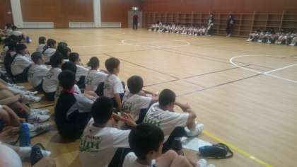 体育館で室内オリンピックを行いました。元気に校歌を歌う種目からはじまり、さらに六種目行われました。最初はおとなしかったクラスも大声を張り上げて応援していました。気になる優勝クラスは・・・おみやげ話を楽しみにしていてください。