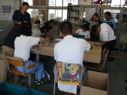 8月29日、30日の2日間、特別支援教室作業体験を行いました。スイッチや扇風機、コピー機まで部品の中に組み込まれている基盤のネジを丁寧に取り除き、銅線やその他の部品にきれいに分けました。子どもたちは、集中して作業をし、またとても楽しそうに行っていました。特定非営利活動法人ダ・カー歩の皆様、貴重な体験をさせていただき本当にありがとうございました。