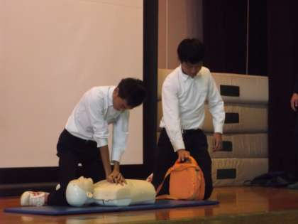10月20日(金)と10月23日(月)の2日で、3年生が心肺蘇生講習を受けました。事故があったとき、少しでも早く応急処置をすることの大切さを教わりました。実際に人形を使って、心臓マッサージの練習もしました。意外と力を入れる必要があることも学びました。大変お忙しい中、本校に来てくださった東成消防署のみなさん、本当にありがとうございました。