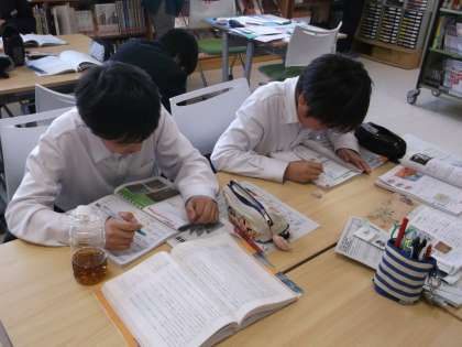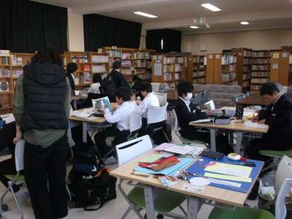 本日より学年末テスト1週間前になり、基本的に部活動もありません。放課後の図書室では、元気アップの主催によるテスト前学習会が行われていました。27人の1年生が、それぞれ自分の学習したい教科を勉強していました。黙々と問題集を進める子もいれば、教え合っている子もいました。今年度最後のテストです。みんな頑張れ!