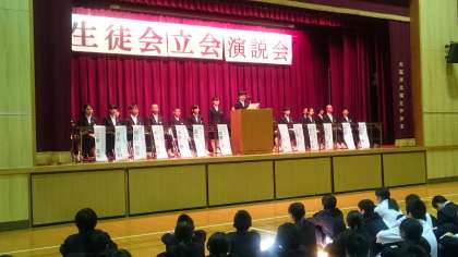 3月15日(木)、来年度の前期生徒会のメンバーを決める選挙が行われました。1,2年生だけでしたが、静かな状態で立会演説会が行われました。今回は非常に多くの生徒が立候補してくれました。各立候補者と推薦者は、自分の想いや理想を一生懸命に伝えてくれました。また、それを聞く側も自分たちの代表を決めるために、真剣な姿勢で聴いていました。新年度の相生中学校をきっと、しっかり引っ張って行ってくれるでしょう。