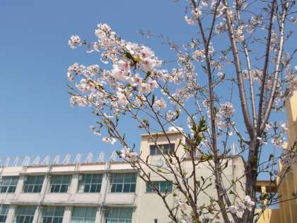 春休みに入り、すっかり暖かくなりました。本校正門を入ると正面に2本の桜の木があります。まだまだ小さいですが、立派に花が咲いています。明日から新年度のスタートです。教職員一同今まで以上に子どもたちのために頑張っていきます。