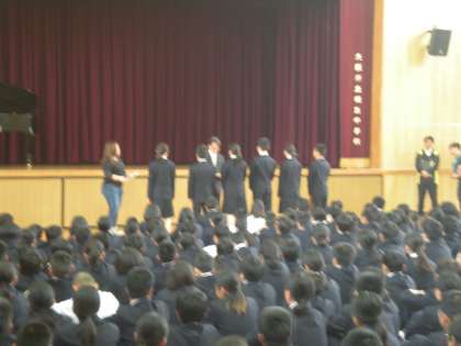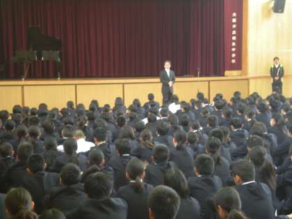 その後の全校集会では、学校長より本校の生徒のあいさつは品があると本校に来校された方からお褒めいただいたことと、部活動に懸命に参加する姿勢がこちらも頑張る気にさせることのお話がありました。