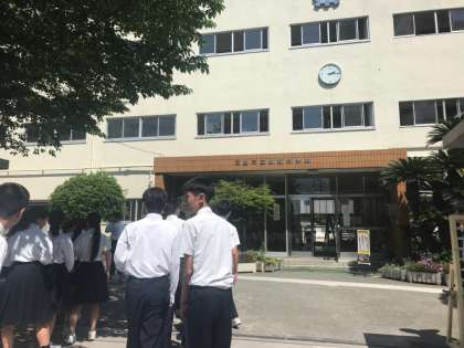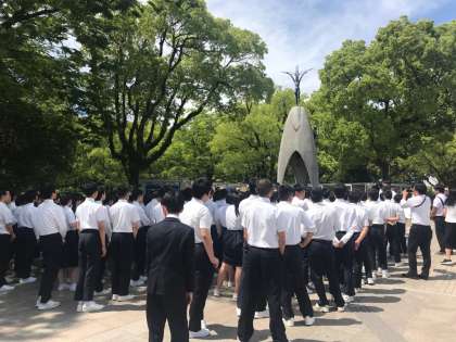 平和記念公園の資料館を見学し、原爆の子の像の前で平和セレモニーを行った後、幟町中学校にて平和交流会が開かれました。