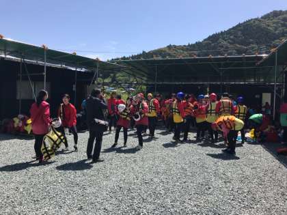 ラフティング乗り場に向かっています。急流のスリルが待ち遠しい。