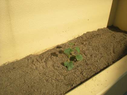 先日、本校の緑化活動の一環で、東成区の伝統野菜である玉造黒門越瓜(たまつくりくろもんしろうり)の苗を東門の花壇とプランターに植えました。