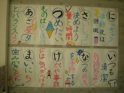 保健委員が制作した暑い夏をのり越える標語を掲示しております。
