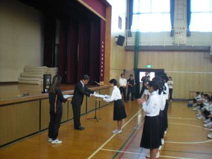 次に、吹奏楽部、陸上部、ラグビー部の賞状伝達を行いました。ラグビー部は、府大会を優勝し、近畿大会出場を決めました!!各部活の今後の活躍を願っています。