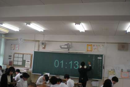 本校は今年度、大阪市の施策の1つである学力向上推進事業のモデル校となっています。これまでの講義中心の授業から、生徒の主体的な活動を伴う学びの授業への工夫改善を進めているところです。また、ICT機器を使用した授業展開も積極的に進め、ペアワークやグループワークなどの活動を通じて、子どもたちが主体的に考え、学んでいく授業をめざしていきます。そのため、定期的に国語科では研究授業を行っています。