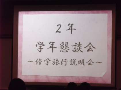 また、2年生では次年度に実施する修学旅行の説明会を併せて行いました。