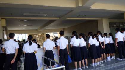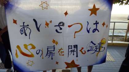 先週になりますが、あいさつ運動・登校指導週間ということで、生徒会の生徒中心に玄関に立ってあいさつの励行を行いました。写真の旗はアート部の生徒たちが作成してくれました。
