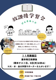 11月のげんきアップニュースレターと放課後学習会の案内です。