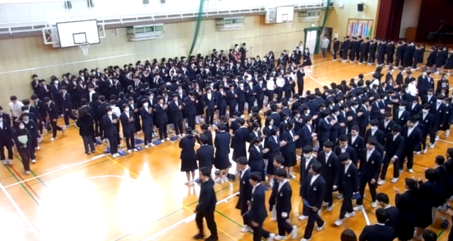 卒業する3年生と、1・2年生の代表生徒がそれぞれ言葉を述べた後、3年生が「あなたへ~旅立ちに寄せるメッセージ」を合唱しました。
