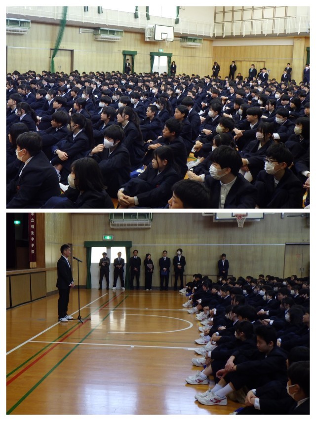 少し長い時間かかってしまいましたが、全生徒しっかりと聞く姿勢が保たれていました。